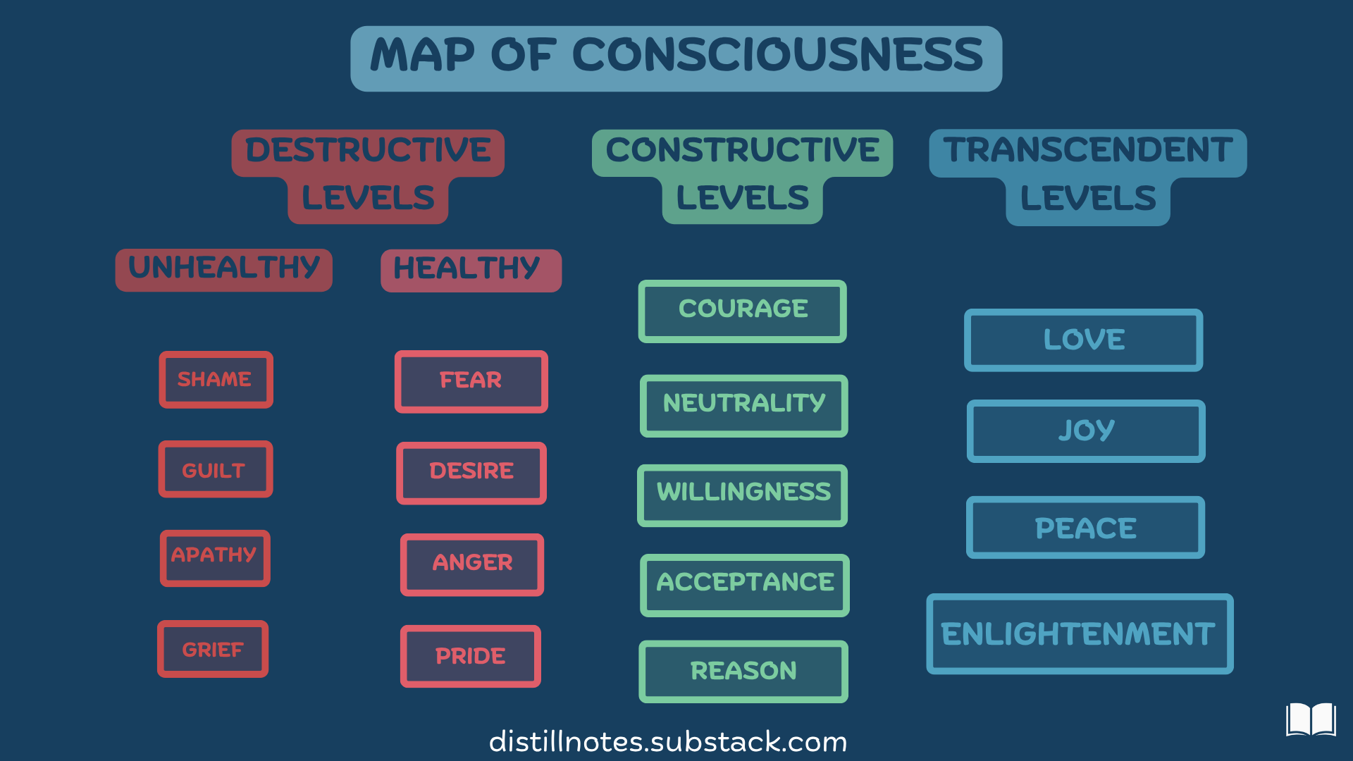 Hawkins describes levels of human consciousness—from destructive emotions like shame and guilt to transcendent states like joy and enlightenment. It hit me so hard, I began taking notes. Then, I began writing. Then... I stopped.